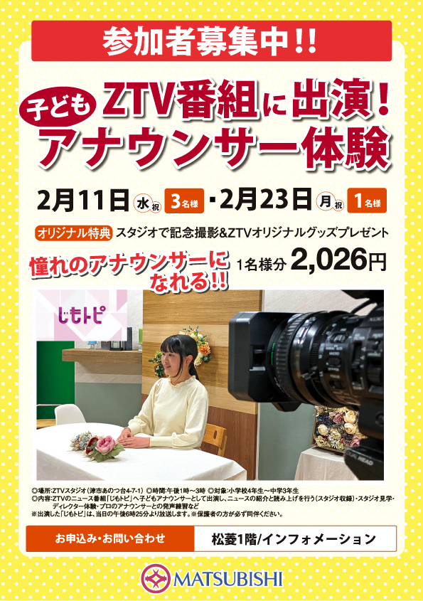 参加者募集中!ZTV番組に出演!子どもアナウンサー体験